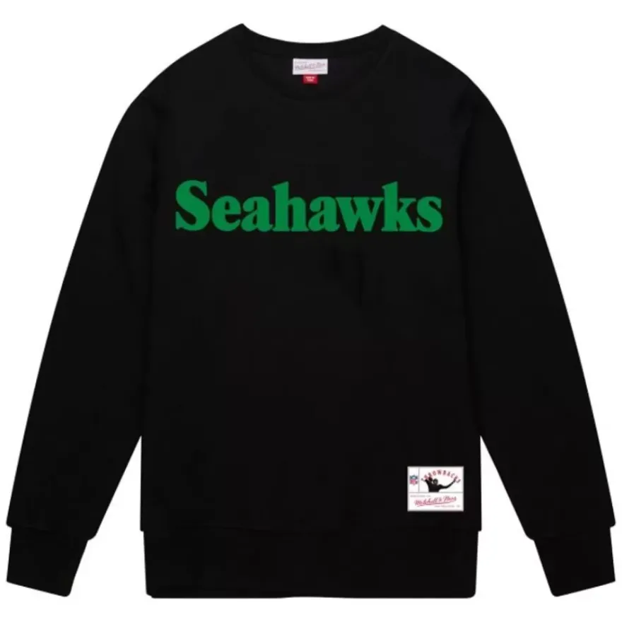 Mitchell & Ness Hoodies & Sweatshirts-Team Wordmark 1 Crew Seattle Seahawks