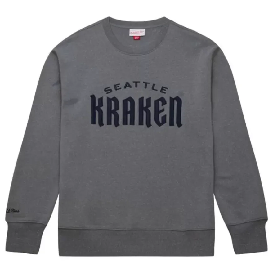 Mitchell & Ness Hoodies & Sweatshirts-Snow Washed Fleece Crew Current Logo Seattle Kraken