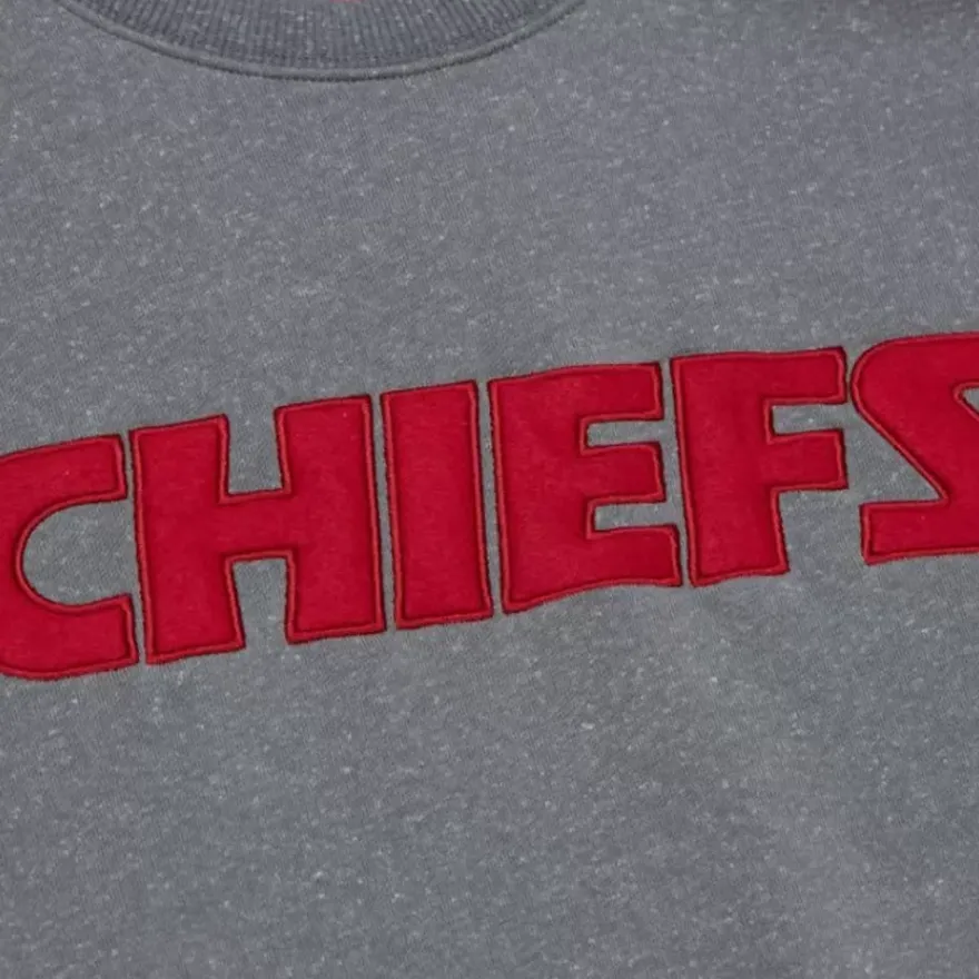 Mitchell & Ness Hoodies & Sweatshirts-Snow Washed Fleece Crew Kansas City Chiefs