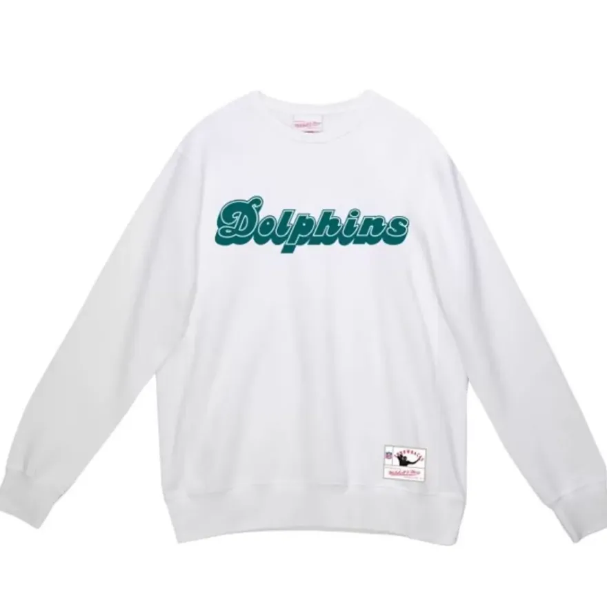 Mitchell & Ness Hoodies & Sweatshirts-Team Wordmark 1 Crew Miami Dolphins