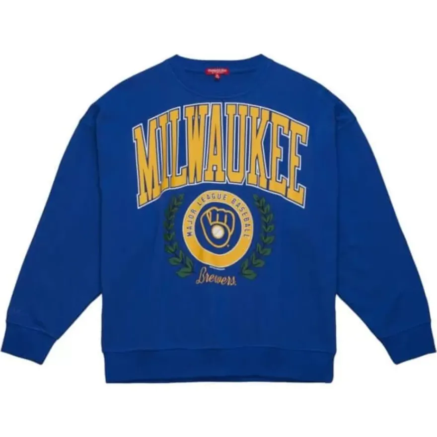 Mitchell & Ness Hoodies & Sweatshirts-Womens Logo Lt Crew 2.0 Milwaukee Brewers
