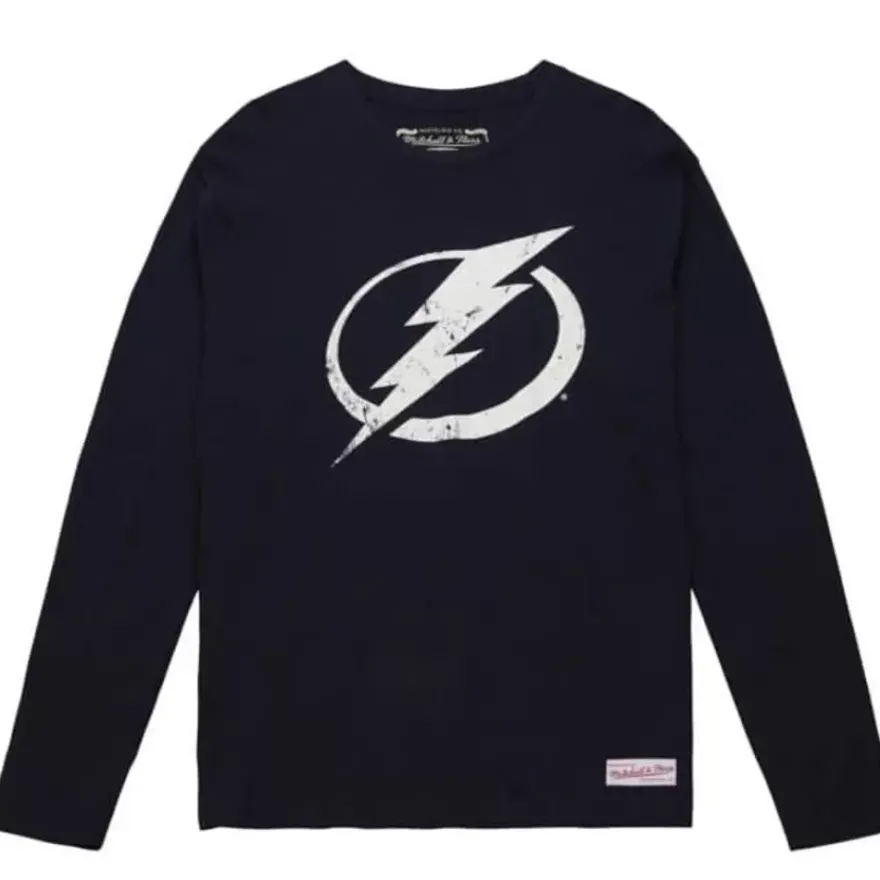 Mitchell & Ness T-Shirts & Tops-Distressed Logo Ls Tee Tampa Bay Lightning